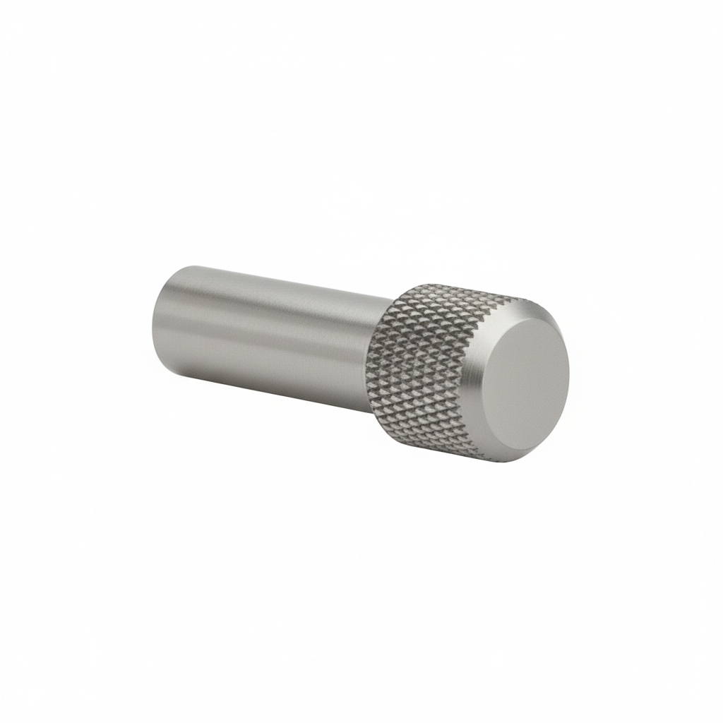 Knagen er fremstillet med en elegant børstet overfalde i rust fri stål, som er modstandsdygtig over for ridser og bevarer farven flot over tid.Knagen har et 6mm (M6) hul til en skrue, så den kan monteres direkte i væggen eller som greb igennem et element.