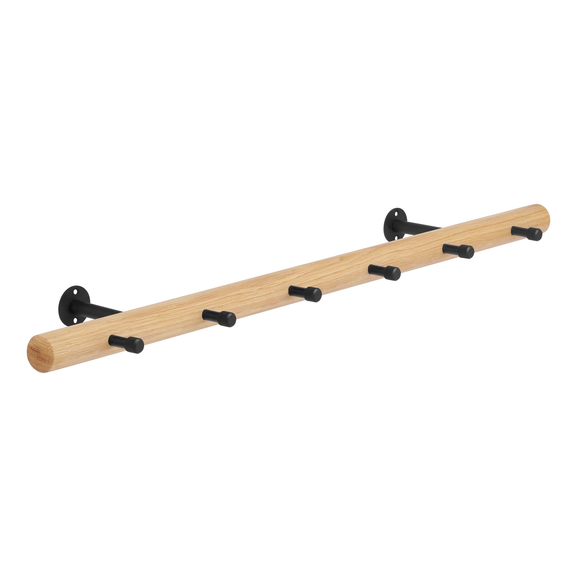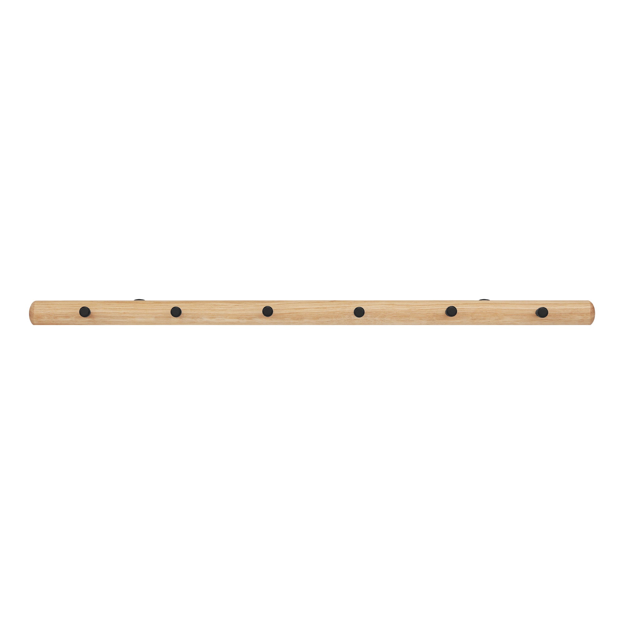 Smuk minimalistisk knagerække i eg med sorte knager.