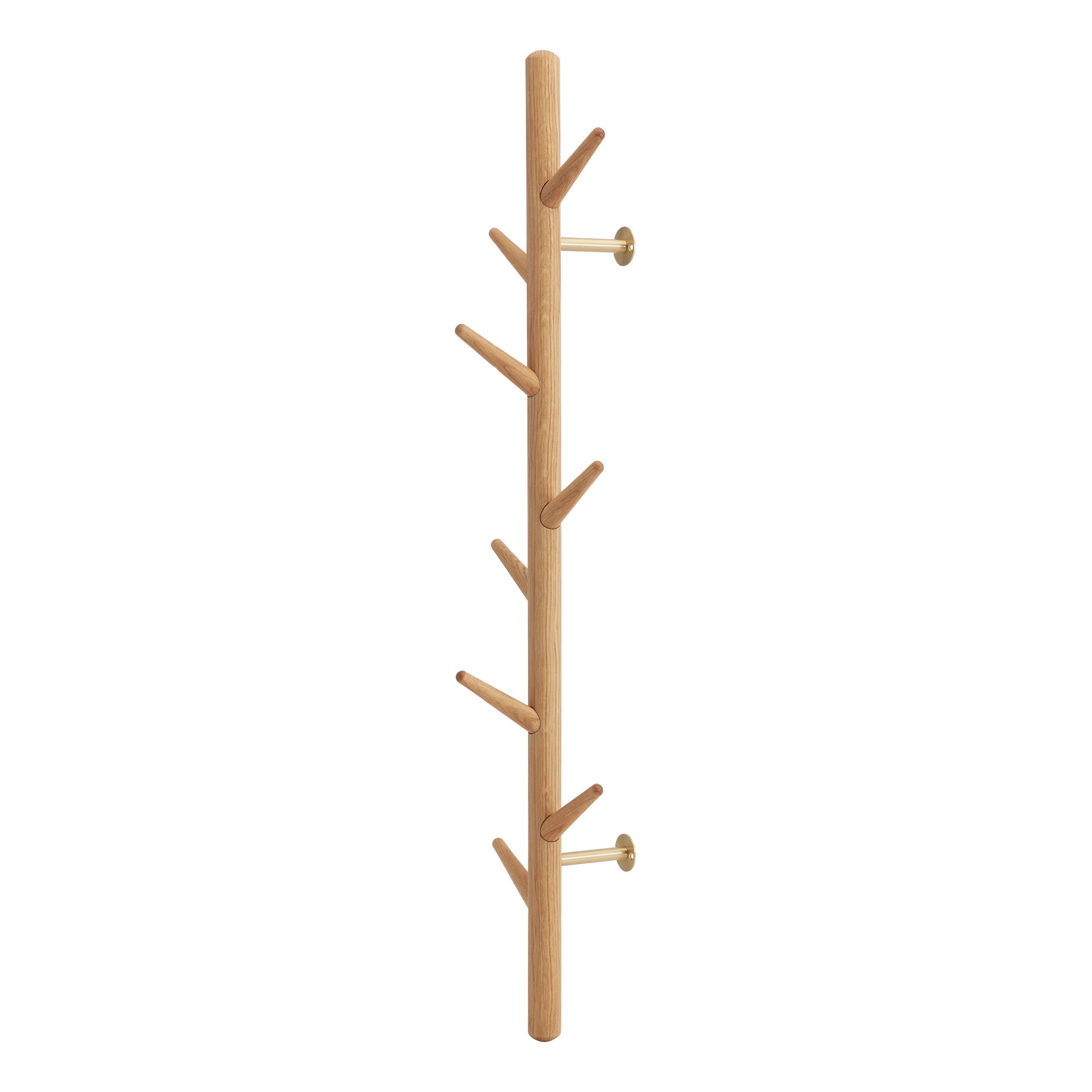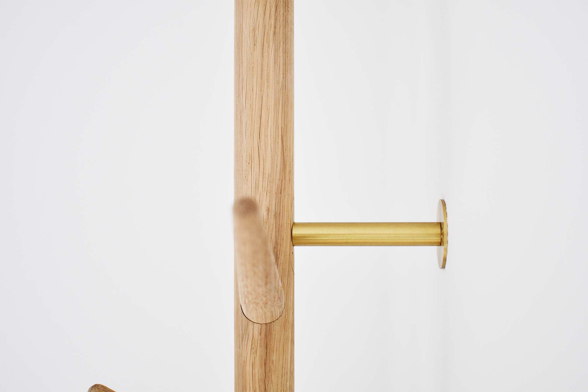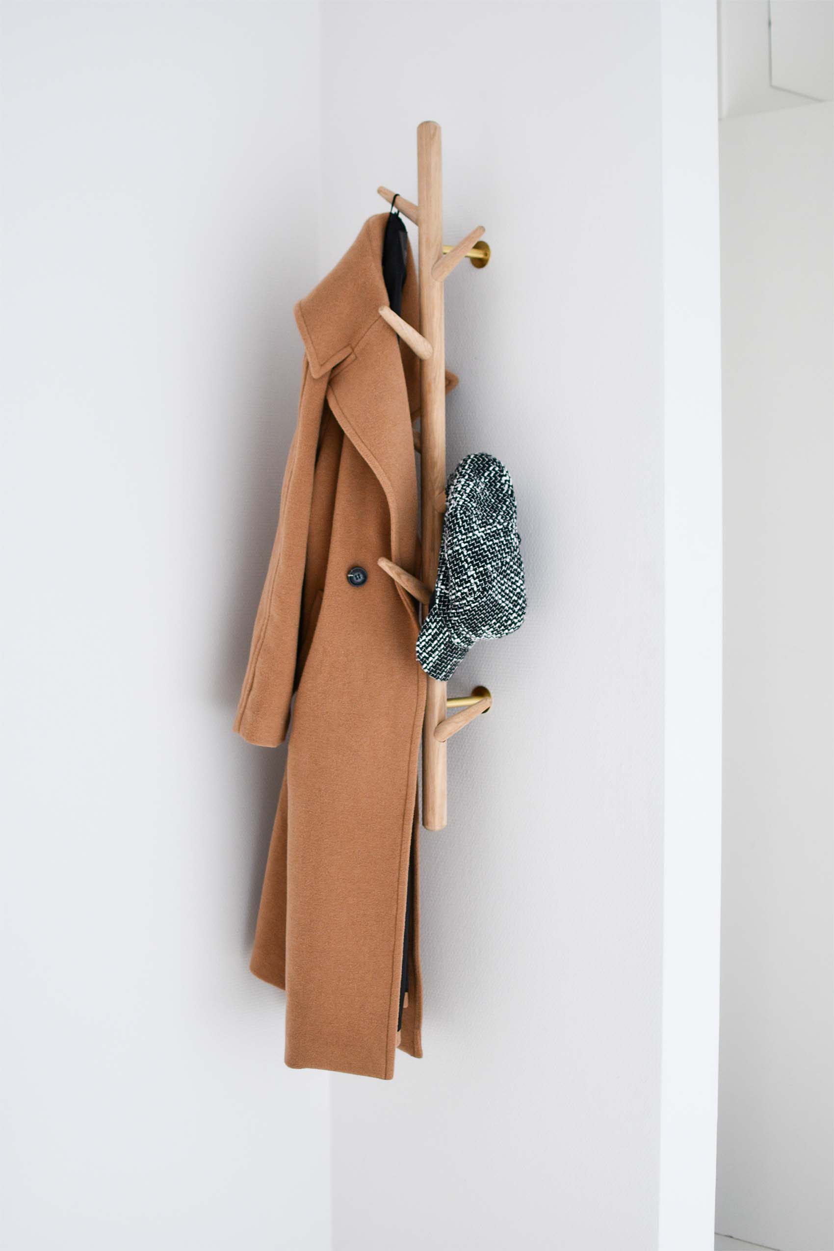 Vores elegante stumtjener i olieret egetræ og lakeret messing, er designet til at berige dit hjem med stil og funktionalitet. Denne væghængte stumtjener er det ideelle valg for rum med begrænset plads, og er et elegant alternativ til den traditionelle knagerække.Fremstillet af materialer af høj kvalitet, kombinerer stumtjeneren naturlig charme med et strejf af luksus, og sikrer praktisk opbevaring af alt fra overtøj til tasker og accessories med sine 8 knager.